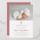 Religious Rose Gold Cross Girl Photo Baptism Foil Invitation.