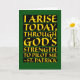 This religious St. Patrick's Day card features a quote from the ancient prayer known as "St. Patrick's Breastplate" or "St. Patrick's Lorica." The prayer comes down to us from St. Patrick himself. It is a prayer to be said when getting up in the morning, and it invokes God's power against all the evils that we face. This is a beautiful passage from that prayer: "I arise today, through God's strength to pilot me." It is lettered in elegant white and gold calligraphy and looks lovely in the Celtic colours of green and gold.