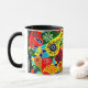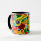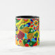 Remarkable Forms and Shapes Original Abstract Art Mug. Dynamic, organic playful shapes and contours are set in an asymmetrical outlined composition. Energy and radiance are represented with distinctive forms, unified by the primary colour palette and enhanced with tints, shades and tones. This original artwork is hand-painted in acrylic and markers by artist Aleksandra Grbic Hrustic. Copyright, all rights reserved. This colourful mug is the ideal partner for the morning coffee.