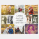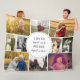 Remembrance Photo Collage Blanket in loving memory of a friend or multiple family members. The wording in the centre reads "loved beyond words, missed beyond measure" and is lettered in elegant script and modern uppercase typography. The photo template is set up for you to add 10 of your favourite photos to create your own unique keepsake, which you can customise to remember one or more loved ones. The design allows you to add landscape, square and portrait pictures to give you as much flexibility for placement as possible. This memorial photo blanket has a background colour of white which you can edit if you wish (click customise to enter design tool - or message us for assistance).