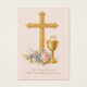 Personalize this beautiful gold cross, host and chalice floral design First Holy Communion Remembrance Card with a beautiful traditional Catholic Anima Christi prayer on the back.