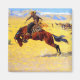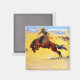 Magnet featuring Frederic Remington’s oil painting Cold Morning on the Range (1904). A cowboy rides a brown and rambunctious horse. A great gift for horse lovers and the Old West.