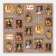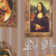 A selection of the most famous artworks painted and created during the Renaissance: Mona Lisa by Leonardo da Vinci, The Creation of Adam by Michelangelo, The Birth of Venus by Botticelli, Donatello's David, The Venus of Urbino by Titian, Lady with an Ermine by Leonardo da Vinci, Albrecht Dürer's Self-portrait. This conversational piece, with framed art in ornate ornamental style, on trendy mocha mousse soft brown and beige stripe will make a great accent wall in kids room, art classroom, homeschool, dorm or any other space. Could be used for crafts and other creative purposes.