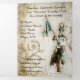 Renaissance fairy tale style wedding invitation done in a book looking tri fold. The outside is done in a teal blue leather look, with graphics of gold decorations and scroll accents. The inside is done in graphics of antique looking paper with an armoured knight on horseback. The inside middle section has a custom photo slot ready for your picture. Personalise all the text fields for your special wedding announcement.