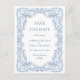 Elegant Vintage Blue French Garden Floral Wedding Save the Date Postcard.