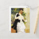 Renoir Dance in the City postcard. Oil painting on canvas from 1883. One of Pierre-Auguste Renoir’s famous dancing couples paintings, Dance in the City depicts a woman with light brown hair swaying with a man in a tuxedo. The woman wears a pink flower in her hair, long white gloves, and a flowing white silk gown. The couple appears to be dancing in a fancy hall adorned with palm fronds and tropical plants. A pretty gift for fans of Renoir, dance, romantic couples, and impressionism.