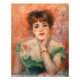 Renoir Jean Samary in a Low Necked Dress photo print. One of Renoir’s most charming portraits, his depiction of Jeanne Samary employs the sharp use of pink and green characteristic of the artist’s best work. The young red head leans towards the viewer, chin in hand, with a slight smile and light gaze of her blue eyes. The green dress she wears accentuates her shoulders and visage. A great gift for fans of Pirre-Auguste Renoir, impressionism, famous portraits, and French art.