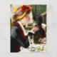 Renoir Luncheon of the Boating Party postcard. Oil painting on canvas 1881. Luncheon of the Boating Party is one of Pierre-Auguste Renoir’s most beloved paintings. The work features the artist’s friends dining on a balcony at the Maison Fournais near the Seine River in Chatou, France. The table is stocked with fruit and wine, which is surrounded by multiple diners, many of whom are famously wearing hats that serve as multiple focal points of light. A woman plays with a small dog and two men wearing sleeveless shirts work to frame the action of the scene. A great gift for fans of Renoir, impressionist panting, French art, and lively dining scenes.