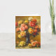 Renoir Roses in a Vase note card. Oil on canvas from 1917. A beautiful flower painting from late in Renoir’s career, Flowers in a Vase depicts a bouquet of red, yellow, white and pink roses in a small blue vase. The roses are in full bloom, heavy to the point of falling over, and weigh themselves down over the rim. Many of the roses have fallen about the base of the vase where they sit romantically in the shadows. A beautiful gift for fans of Renoir, impressionist flower paintings, and French art.