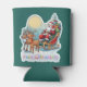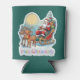 Farbenfrohe Weihnachtlandschaft, auf der der Weihnachtsmann mit seinem Rentierschlitten, die Geschenke verteilt. Rudi "the rednose rendeer" ist mit dabei! Text im Banner: "Frohe Weihnachten".