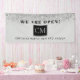 On a light silver background bordered with sparkly silver-grey glitter are the words your customers have been longing to see: "We Are Open!." The centerpiece of this horizontal banner is your unique two-initial monogram logo and business name for easy recognition of your business. Designed for hair and makeup salon businesses, this banner could be adapted for any retail shop. All of the text can be easily revised on the Personalisation template.