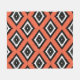A seamless, retro-inspired pattern featuring a repeating motif of orange and white diamonds on a black background. The geometric design has a bold, graphic feel, making it perfect for use in a variety of projects. This versatile pattern is ideal for fabric prints, wallpaper, stationery, digital backgrounds, and product packaging.