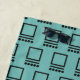 This beach towel has a mid-century modern design of squares with a line and a line of circles, all black, repeating across the design on a field of seafoam. If you like the design but prefer different colours, message me.