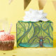 "Repeating dragonfly pattern on green wrapping paper, shown unrolled and flat. The design features teal dragonflies on vibrant green foliage."