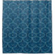 Repeating geometric Art Deco pattern with teal lines and orange dots on a dark blue background, creating a symmetrical and elegant design.
