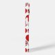 This phone case has a Valentine’s design of repeating hearts with different graphics inside on a field of white.