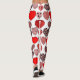 These leggings have a Valentine’s design of repeating hearts with different graphics inside on a field of white.