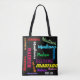 Repeating Name on Black Colourful Canvas Shoulder Tote Bag