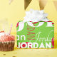 This modern repeating name red and white graffiti pattern personalised Christmas wrapping paper features their name or family name in a repeating word pattern with different trendy fonts on a Christmas green background. Your recipient will love to see their name gracing the front of their gifts! Order a roll for each family member, and they will love to see that Santa thought of them this Christmas!