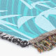 If you want a throwblanket for a modern setting, then look no further! This nature-inspired design gets you there with a repeating pattern of teal / aqua bamboo grass. A fresh, timeless look.