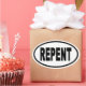 'Repent' European style oval bumper sticker.
