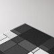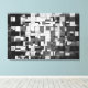 A geometric design in black and white, featuring a mesh of squares and rectangles...