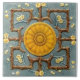 This tile features blossoming branches against a blue background behind a geometric espaliered design of branches around a large yellow sunflower. Note that although the original antique tile is molded and dimensional, this tile is actually flat and just looks carved.
