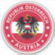 Emblem of Republic of Austria with flag of Austria colours, rounded shape,