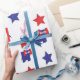 Red, white and blue wrapping paper with Republican elephant and starts on white.