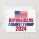 Republicans who are anti Trump need this 2024 election card to show they are against re-election. Vote against Donald Trump and save our country. Patriotic American Flag postcard in red, white, and blue for a Republican.