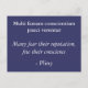 A blue postard with a latin phrase from Pliny and the English translation underneath. "Many fear their reputation, few their conscience".