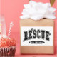 Bold vintage-style text design that says “RESCUE” with paw prints around it, and “ALL THE DOGS” below in a black badge with small heart icons.