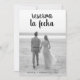 Photo save the date card in Spanish featuring your full bleed vertical picture and a text overlay with the words, "reserva la fecha" in a thick black script handwriting at the top. At the bottom are your names and date. The backside has all of your wedding details in black over a white background. The text and background may be changed to any colours you wish. A simple and modern design that makes your photo the main feature.