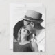 Modern photo save the date card in Spanish featuring a minimal design on the front with your monogram at the top and your details in black over a white background. The back has your full bleed vertical picture. A simple and contemporary design that is great for a minimalist style wedding.