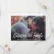 Modern photo save the date card in Spanish featuring your horizontal full bleed picture with a text overlay. The words, "reserva la fecha" are in a white brush script handwriting font. The backside has all of your wedding details in black over a white background. A simple yet elegant design that makes your photo the main feature.