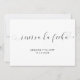 A typography Spanish Save the Date featuring the words, "Reserva la Fecha" in black calligraphy with swashes and hearts over a white background. The backside is black and may be changed to any colour you wish. The simple and minimal layout and lots of open space give this design a modern feel and the calligraphy lettering and hearts give it a romantic twist.