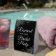 This simple tabletop sign will let your wedding guests know which areas are reserved for the bridal party. The simple black and silver design features elegant script lettering with decorative curls and swirls in the corners.