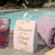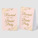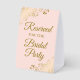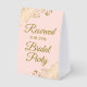 This simple tabletop sign will let your wedding guests know which areas are reserved for the bridal party. The simple pale blush pink coloured design features elegant gold script lettering with decorative golden faux foil curls and swirls in the corners.