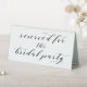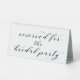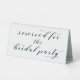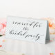 Swash font calligraphy Reserved For The Bridal Party tabletop tent sign.