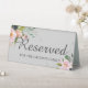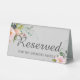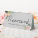 This beautiful wedding table sign features blush pink roses accented with olive leaves and aqua branches. The grey text compliments the soft colours of the bouquets. The word "Reserved For the Groom's Family" is boldly featured on both sides of the card. All details, including text colour, are completely customisable.