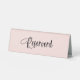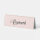 Black hand lettered script: Rerserved. Rose gold, blush background.