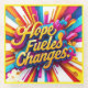 A vibrant design where multi-coloured text "Hope Fuels Changes." radiates with energy, each letter gleaming with golden accents that symbolise hope’s power to transform. The lively hues blend together in harmony, evoking a sense of optimism and renewal, while the golden highlights add an inspiring touch of warmth and promise. "Original Image was generated by Meta AI. AI generated artwork. Licensed under CC BY-SA 4.0.
