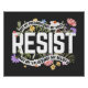 This bold and empowering "RESIST" design is a strong statement of defiance against political and social injustice. The striking white typography is surrounded by vibrant floral elements, symbolising resilience, unity, and the power of collective resistance. The accompanying text—"Not My President, Not My Voice, Not My Values, Not My Beliefs"—reinforces a clear stance against oppressive policies and ideologies.