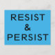 Tell your political representatives what you want them to fight for on a postcard featuring the words "Resist & Persist" in bold black text on a bright blue background.