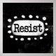 Bold text reading "Resist" is centred against a black background. The black text sits on a white rectangle with large textured white dots around it, providing a playful contrast against the solid colour backdrop.