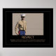 Military Officer in dress uniform and sabre standing at attention during a public graduation ceremony. The word "respect" and synonyms of the word below. Over a black background.