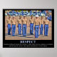Members of the United States Marine Corps stand at attention during a public ceremony. The word 'RESPECT" and it's definition.