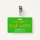 This elegant badge design features the message "EVENT MANAGER". A badge like this could perhaps be used to identify that the wearer is an official at an event. [~Z0000307]