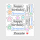 This clean sticker design features the loving message "happy birthday", and a name that can be customised. It also includes a star outline shape. Editable stickers like these could be used to wish a happy birthday to somebody.