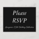 This respectable, elegant RSVP postcard design features the message "Please RSVP" on the front, along with a customisable occasion description. It also features a customisable RSVP form on the back, along with a customisable address that the completed RSVP cards would be mailed to. RSVP cards like this could perhaps be used to find out who will be attending a wedding reception, a Christmas party, a dinner party, or some other celebration.